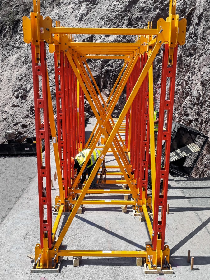 Pri tomto modulovom systéme je možné zhotoviť veže a nosníky len s niekoľkými prvkami. Veže sa dajú výškovo plynulo prispôsobiť.