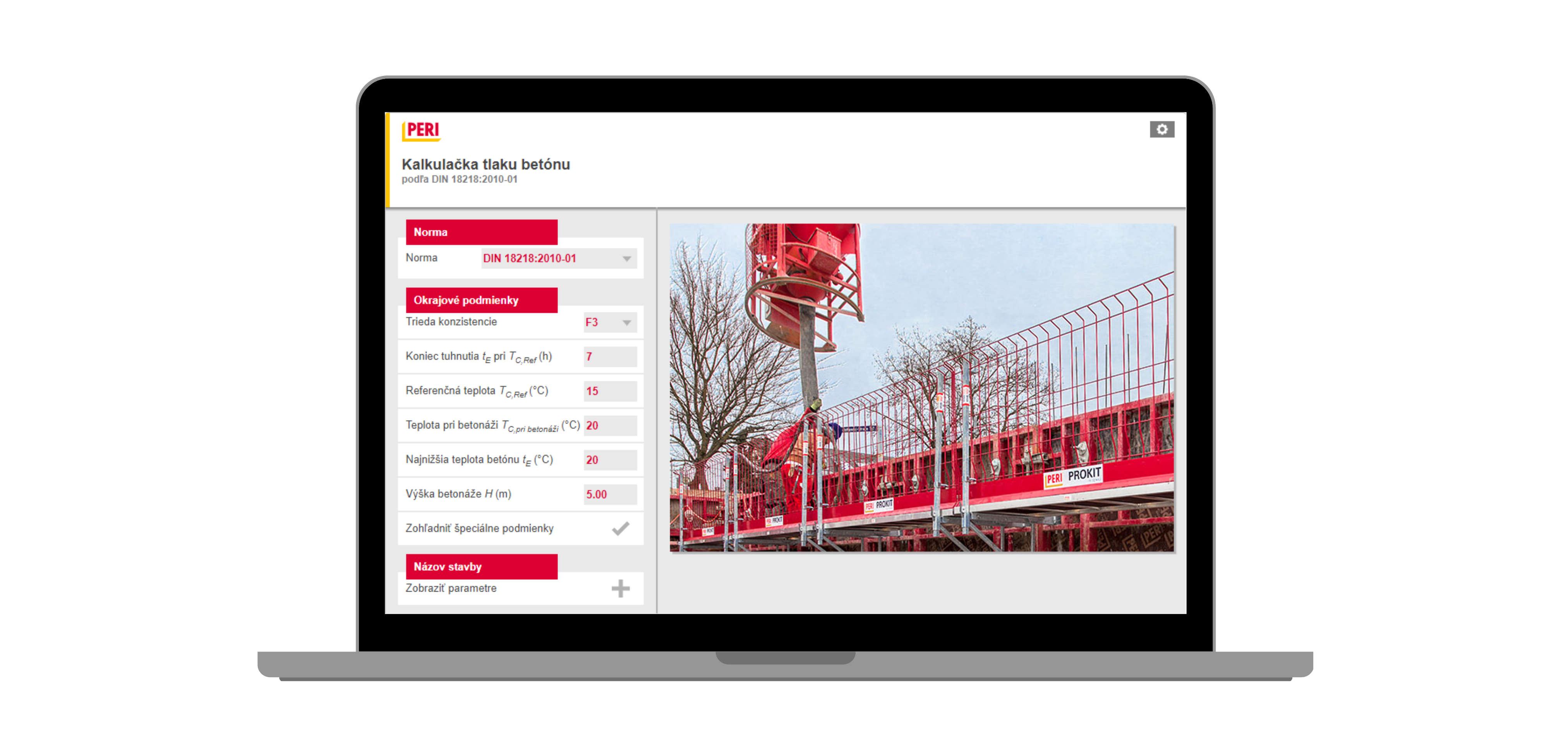 Kalkulačka tlaku betónu PERI poskytuje rýchlu podporu tým, že vypočíta aktuálny tlak čerstvého betónu, konkrétnejšie maximálnu rýchlosť betonáže na základe normy DIN 18218: 2010-01.