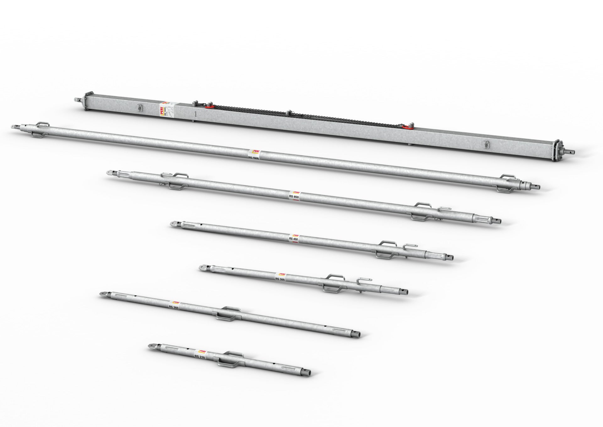 2. StabilizátoryRS stabilizátory slúžia pre zvislé vyrovnanie a prenos síl vyvolaných vetrom pri stenovom a stĺpovom debnení a betónových prefabrikátoch. To znamená, že nie sú nutné ďalšie výložníky. Stabilizátory RS sú odolné vďaka pozinkovaným rúram a závitom. Sú tak trvalo chránené proti korózii a majú dlhú životnosť. Použitie stabilizátorov RS je rýchle a bezpečné, pretože môžu byť nahrubo nastavené z montážnej úrovne.