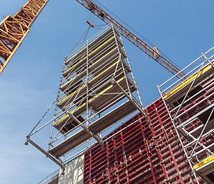 Vďaka spojom overeným na ťah je možné žeriavom premiestniť aj veľkorozmerné zostavy PERI UP lešenia pre vystužovanie.