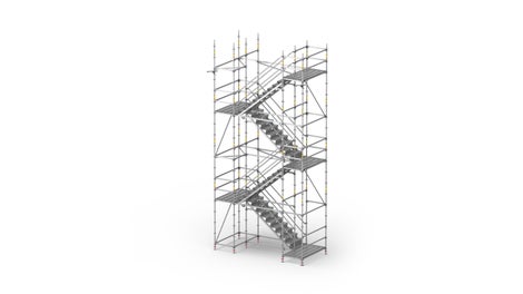 PERI UP schodisko so svojimi širokými a hlbokými schodíkmi umožňujú bezpečný prístup do budov a lešení.