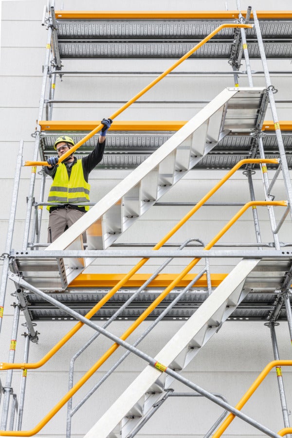 PERI UP Schodisko so šírkou 67 cm poskytuje dostatočný priestor na pohodlný pohyb pracovníkov, čo znižuje riziko úrazov