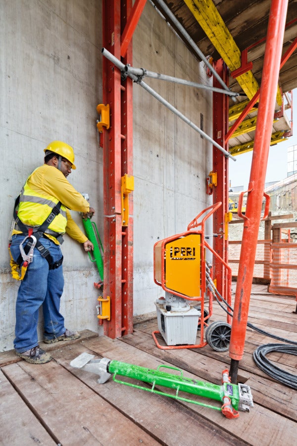 Mobilná šplhavá jednotka umožňuje šplhanie bez pomoci žeriava. Hydraulické valce je možné jednoducho namontovať medzi stenu a šplhavé nosníky.