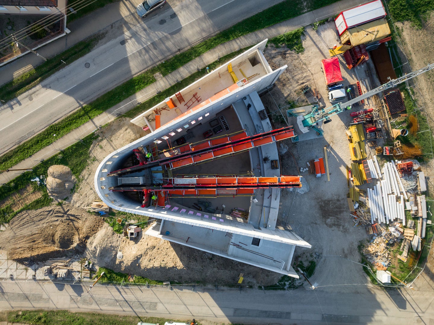Dominantou celej stavby sú stredové nosné stropné trámy, ktoré boli podopreté systémom PERI UP Flex. Podlaha na podpernej konštrukcii bola zhotovená z oceľových závor a nosníkov GT 24 vrátane BOZP príslušenstva.