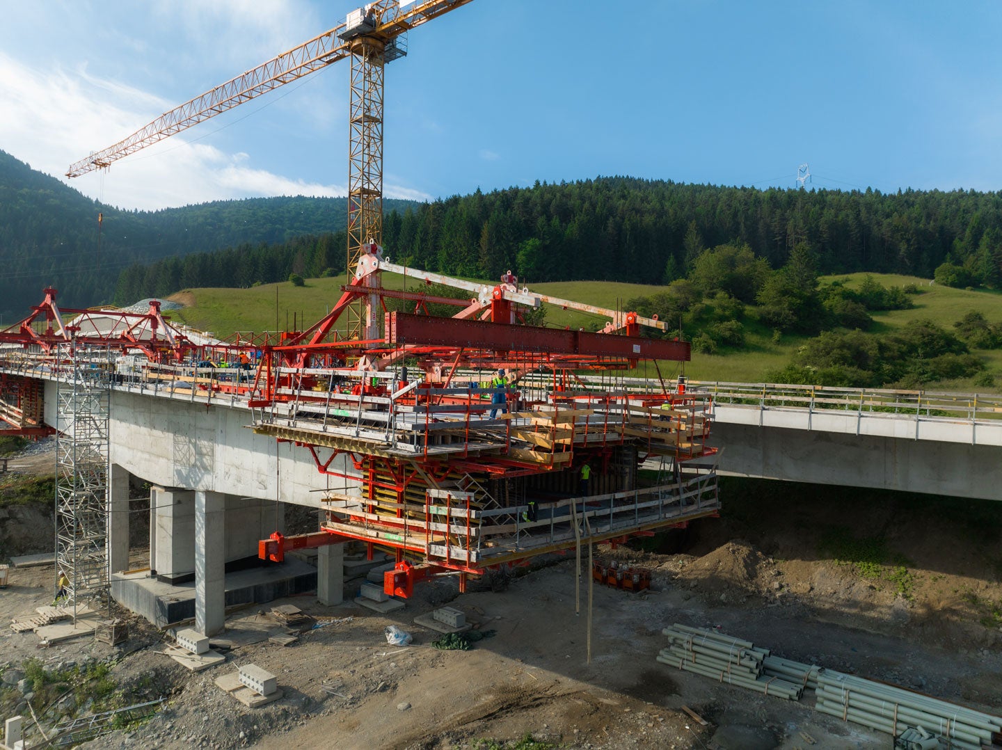V ďalšom kroku po realizácii zárodkov boli realizované predpolia pre ľavý a pravý most.