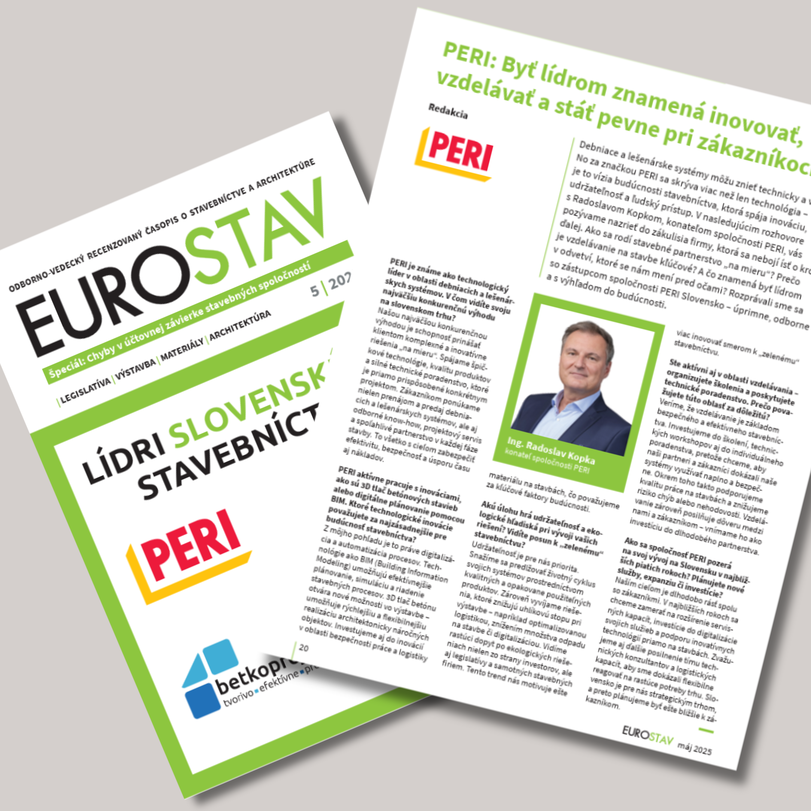 Súčasťou článku je aj rozhovor s naším konateľom, ktorý sa podelil o pohľad na moderné technológie, 3D tlač, udržateľnosť a budúcnosť stavebníctva na Slovensku. Nechýbali ani témy ako odborné školenia, technické poradenstvo a inovatívny vývoj, ktoré sú neoddeliteľnou súčasťou našej firemnej filozofie.